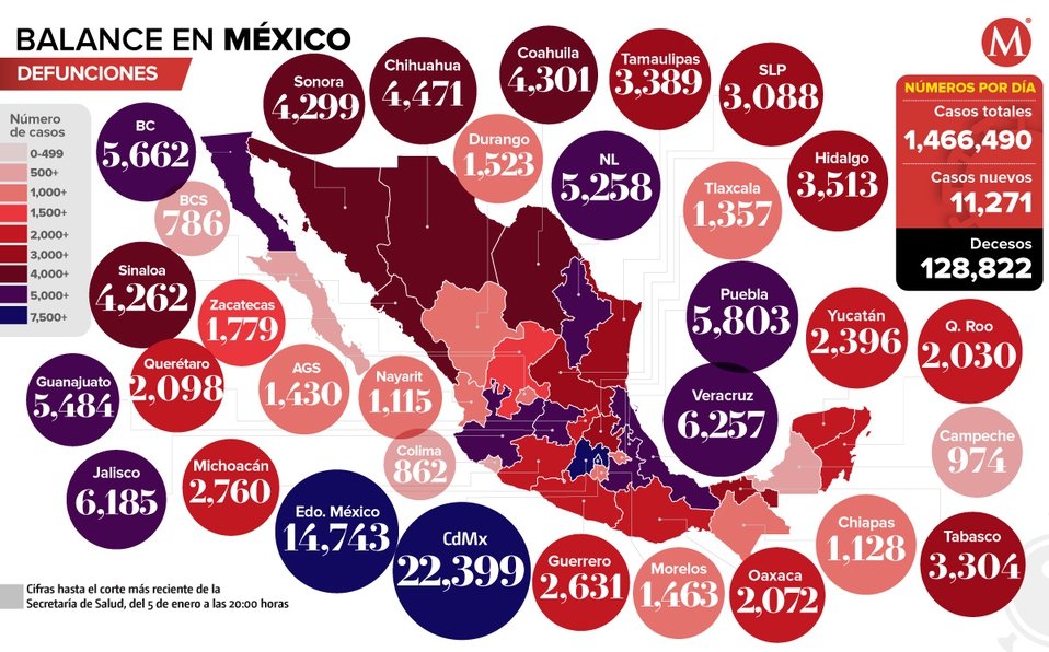 Mapa de muertes por coronavirus en México por estados