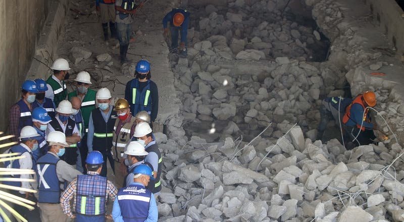 Los trabajos comenzaron el último día de abril con el retiro del agua acumulada que aún quedaba y el verdín que se había formado en la superficie de rodamiento, para luego quitar, en los primeros días de mayo, 200 metros cuadrados del material que cubre al cárcamo.