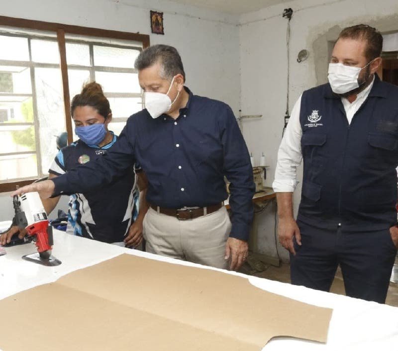 El presidente municipal acudió al sitio para conocer el taller donde la pareja trabaja diariamente en la confección de uniformes deportivos, actividad que se ha convertido en fuente de ingresos también para otra familia meridana, al emplear a una tercera persona.